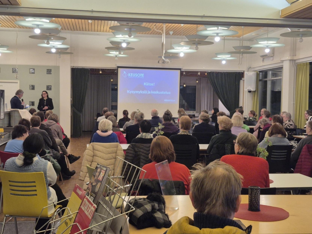 —Kaupunki ja päätöksentekoKeusote järjesti torstaina 15.1.2026 yhteistyössä Järvenpään kaupungin kanssa asukasillan, jossa keskusteltiin hyvinvointialueen sosiaali- ja terveyspalvelujen palveluverkosta ja sen kehittämisestä. Myllytien toimintakeskuksen sali tuli asukkaista täyteen, ja yli puolet tilaisuudesta omistettiin kokonaan kysymyksille ja keskustelulle.