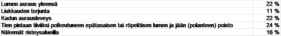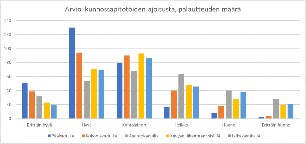 - Kysymys: Arvioi kunnossapidon tasoa (lumen auraus ja liukkauden torjunta) kokonaisuutena?