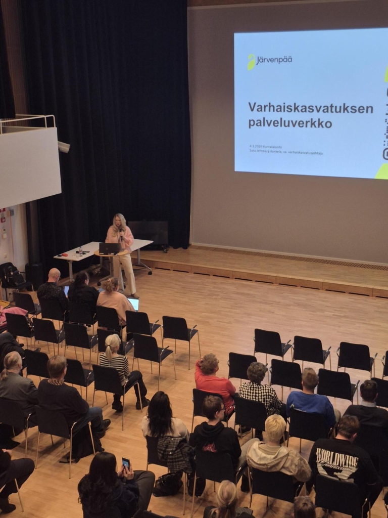 —Opetuksen ja kasvatuksen palveluverkkoJärvenpään kaupunki esitteli keskiviikkona 4.3. Järvenpää-talolla opetuksen, kasvatuksen ja hyvinvoinnin palveluverkkosuunnitelmien valmistelun tilannetta. Tilaisuudessa kuultiin ajankohtaista tietoa suunnittelusta ja käytiin vilkasta keskustelua palveluverkoista kuntalaisten kanssa.