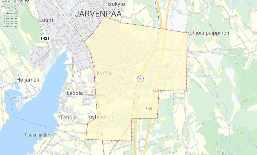 Putkirikon vaikutusalue ulottuu Järvenpäässä Pöytäalhon, Kinnarin, Terholan, Satukallion, Satumetsän, Kyrölän, Mikonkorven ja Ristinummen asuinalueille. Putkirikosta saattaa aiheutua veden sameutta ja värjääntymistä laajalla alueella. Korjaustyöt on jo aloitettu ja vuotokohta rajattu. Tiedotamme lisää tilanteen etenemisestä häiriökartalla.